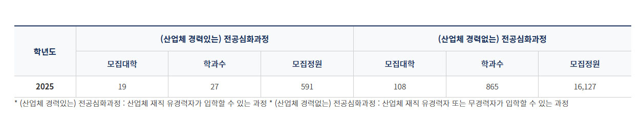전국 전공심화과정 신입생 모집현황
